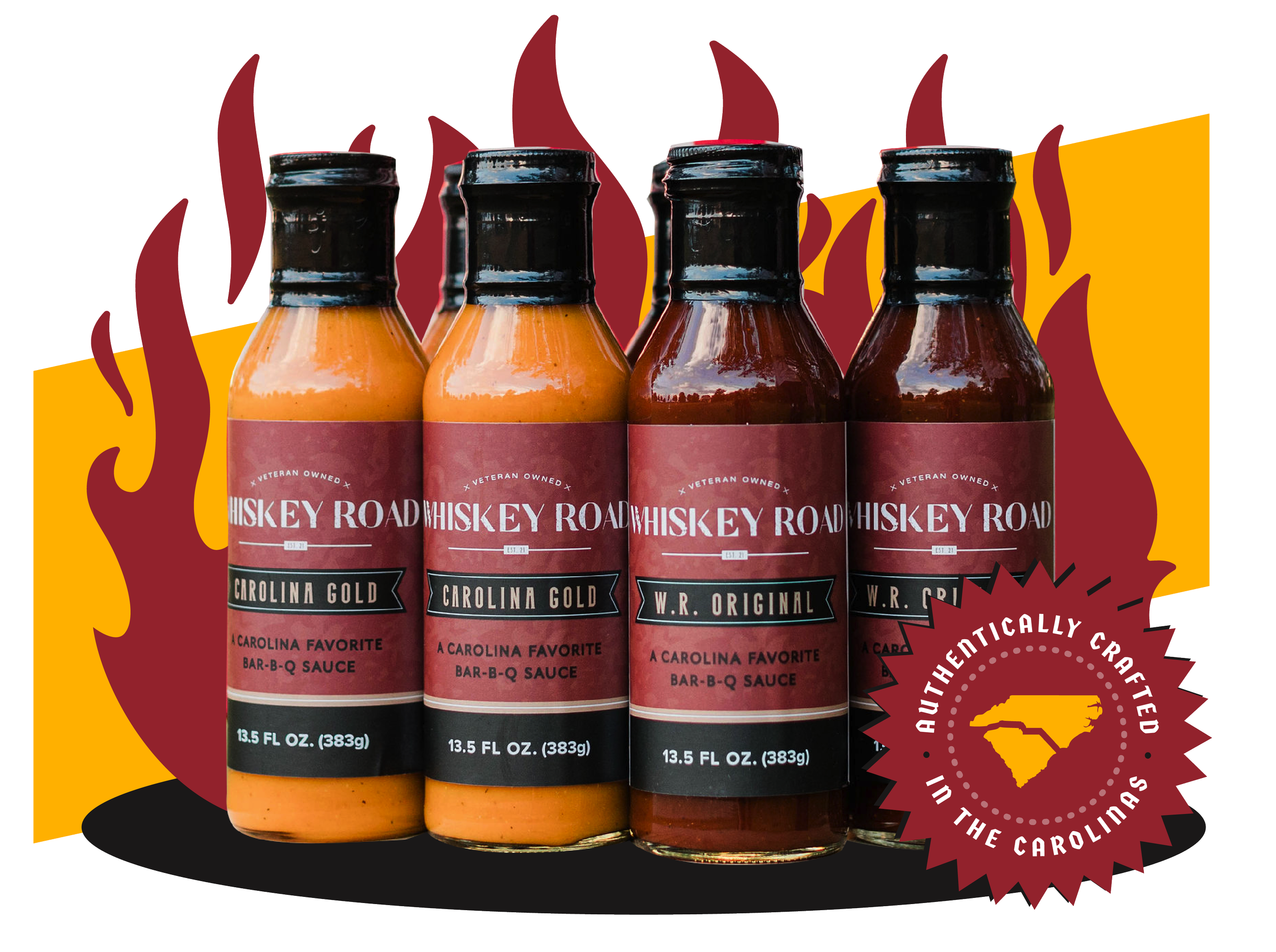 Our sauces are a harmonious blend of flavors; tangy, sweet, and smoky notes that transform even the simplest grilled fare into a culinary experience. Founded by a Marine Veteran and a local BBQ restaurant owner, Whiskey Road Sauces have become a celebrated staple among enthusiasts both in the Carolinas and beyond.